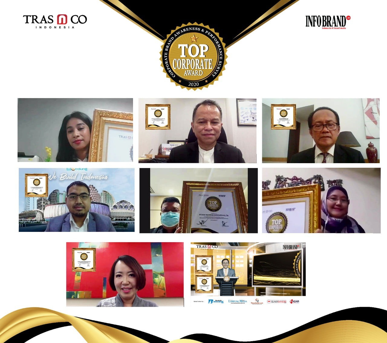Dengan mengacu kepada 3 aspek penilaian, yaitu: Business Revenue Aspect, Nett Profit Aspect dan Digital Corporate Brand Awareness Aspect, INFOBRAND.ID bekerjasama dengan TRAS N CO Indonesia memberikan apresiasi TOP CORPORATE AWARD 2020 kepada emiten terpilih berdasarkan hasil survei TOP CORPORATE INDEX yang telah dilakukan. TOP CORPORATE AWARD 2020 merupakan penghargaan bergengsi yang diberikan kepada perusahaan-perusahaan TOP di Indonesia yang telah berhasil dalam membangun perusahaan dan memiliki kinerja positif.