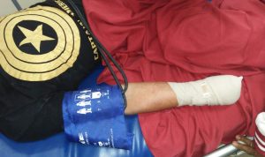 Zaelani korban tawuran saat di RS Fatmawati Jaksel dengan kondisi pergelangan tangan putus.[Yy/radarindonesianews.com]