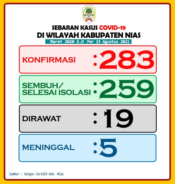 RADARINDONESIANEWS.COM, NIAS – Angka kasus terkonfirmasi Covid-19 di wilayah Kabupaten Nias terus menunjukkan grafik menurun. Pemerintah Kabupaten Nias terus imbau masyarakat terapkan protokol kesehatan.