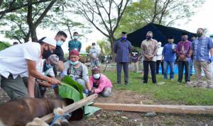 Kegiatan vaksinasi tersebut berlangsung di ruang oval lantai tiga Kantor Bupati Nias, Rabu (24/03).