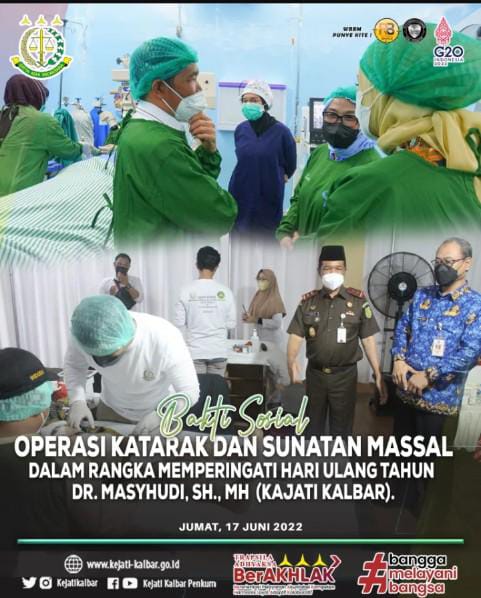 RADARINDONESIANEWS.COM, PONTIANAK — Kejaksaan Tinggi Kalimantan Barat (Kejati Kalbar) Jum’at (17/6-2022), menggelar acara bakti sosial sunatan massal dan operasi katarak.