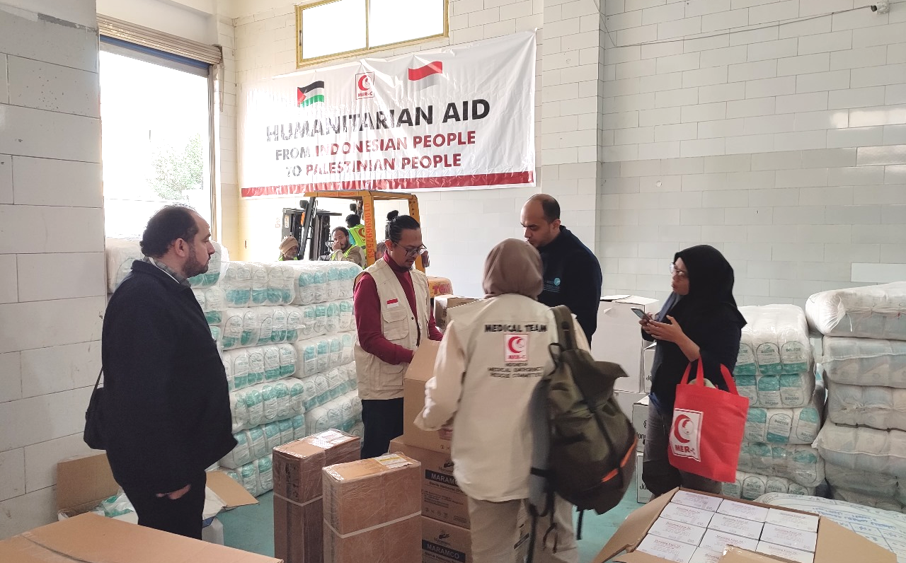 “Di luar sudah menunggu truk yang akan mengangkat bantuan-bantuan ini berangkat dari pergudangan di Kairo menuju ke perbatasan Rafah dan berharap akan masuk ke Jalur Gaza,” lanjutnya.
