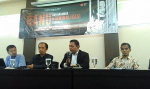 | Fedri Kasman (paling kanan) saat diskusi bertema Ranu dan ancaman kriminalisasi jurnalis.[Dok/radarindonesianews.com] |