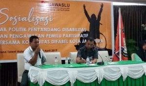 RADARINDONESIANEWS.COM, JAYAPURA – Memasuki massa pencoblosan Pileg dan Pilpres 2019 yang akan dilaksanakan serentak pada 17 April 2019. Bawaslu Kota Jayapura mengadakan Sosialisasi Hak Politik Penyandang Disabilitas dan Pengawasan Pemilu Partisipasi Bersama Komunitas Difabel Kota Jayapura bertempat di Hotel Grand Talent Kota Raja. Jumat (5/4/2019).