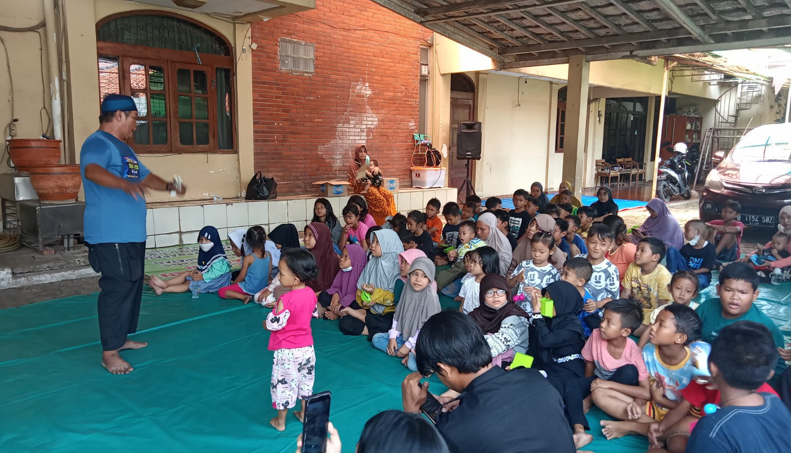 Tampak anak anak bersemangat dan terhibur. Kemudian ada game gambar yang juga membawa anak anak senang dan antusias. Selain dengan nyanyian untuk orang tua, anak anak juga diajak bersolawat.