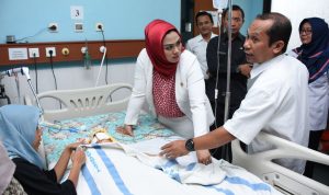RADARINDONESIANEWS.COM, KARAWANG – Bupati Karawang dr. Hj. Cellica Nurrachadiana menjenguk bayi mungil berusia 1,5 tahun yang masih terbaring lemah di kamar PICU HCU Anak Ruang Rawamerta, RSUD Karawang, Rabu, (21/3). Beliau didampingi oleh Dirut RSUD Karawang dr. Asep dan para staff RSUD lainnya serta awak media.
