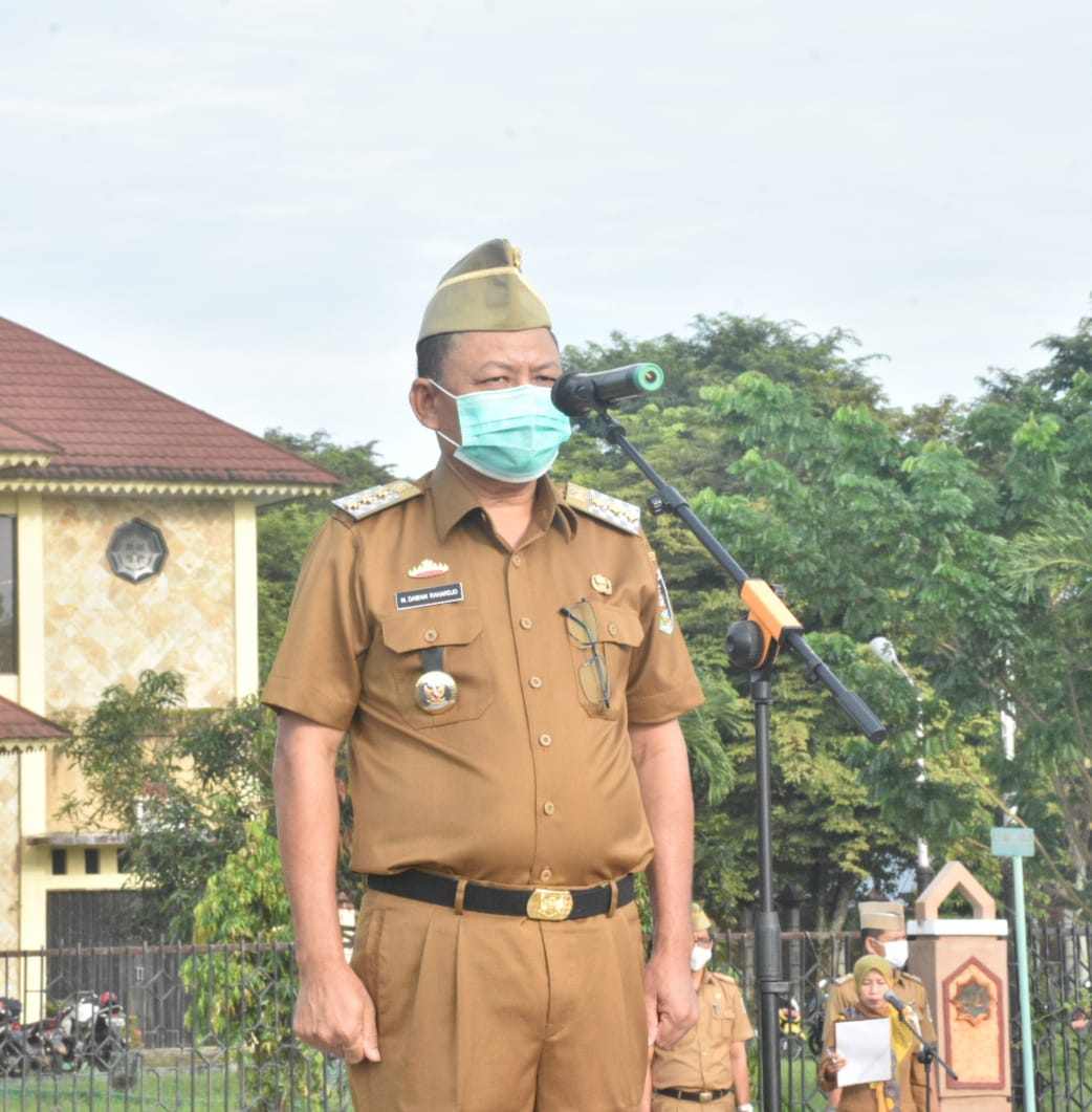 RADARINDONESIANEWS.COM, SUKADANA — Bupati Lampung Timur M. Dawam Rahardjo Memimpin Apel Mingguan di Halaman Kantor Bupati Lampung Timur, Senin (8/3/2021).