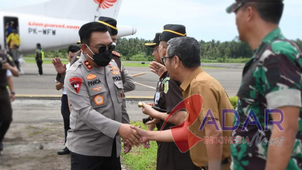 RADARINDONESIANEWS.COM, NIAS – Bupati Nias Ya’atulo Gulo sambut kedatangan Kapolda Sumatera Utara Irjen Pol Drs. R. Z. Panca Putra Simanjuntak dan Kepala Kejaksaan Tinggi Sumatera Utara Idianto di Bandar Udara Binaka Gunungsitoli, Selasa (23/5/2023).