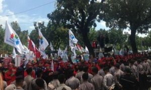 | Demo buruh di Balai Kota.[Mulyana/gin] |