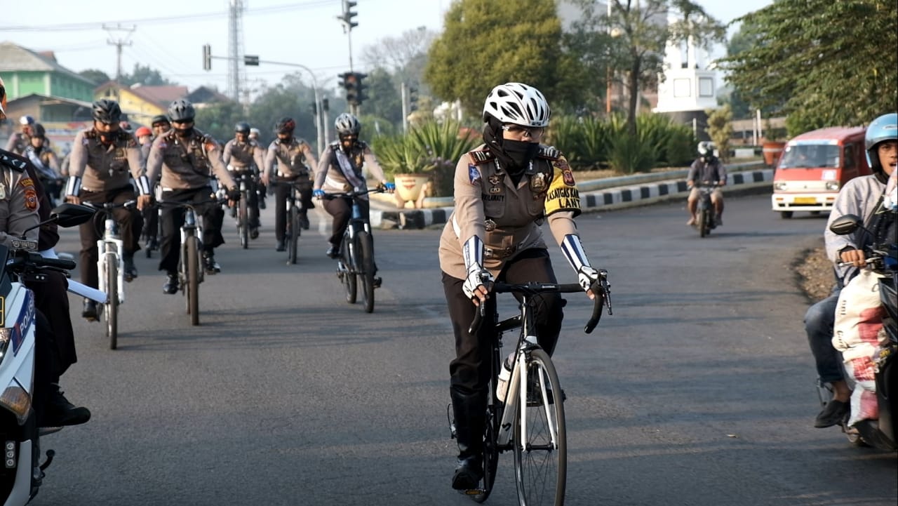 Kapolres Cianjur AKBP Mochamad Rifai pimpin kegiatan Gowes Sepeda Santai dan Pembagian Masker dengan lokasi ataupun titik pembagian masker yaitu bunderan Terminal Pasir Hayam (Pos 10 Cepu), Bunderan Hypermart Tugu Gentur (Pos Tmc 9 Cepu).