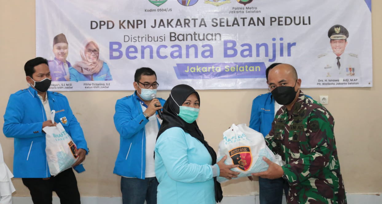 RADARINDONESIANEWS.COM, JAKARTA — Dewan Pengurus Daerah (DPD) KNPI Kota Jakarta Selatan bersama Dandim 0504/JS Kolonel Inf Ucu Yustiana menyerahkan bantuan ke korban bencana banjir, bertempat di Jalan Cempaka RT. 03, RW. 06, Kelurahan Cipete Utara, Kecamatan Kebayoran Baru, Jakarta Selatan Sabtu (27/2/2021)