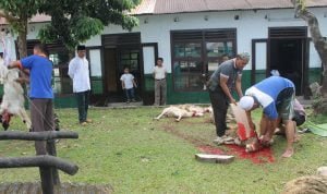 Sebanyak 6 ekor hewan kurban berupa kambing diserahkan kepada panitia H. Muhammad Saiku untuk disembelih dan dagingnya didistribusikan kepada masyarakat yang kurang mampu sekitar Makodim 0824 Jember.