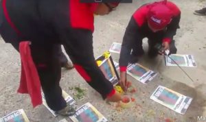 Selain menyebar kertas tersebut, pendemo juga menaburi bunga dan dupa yang dalam sebuah gelas.