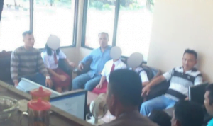Tiga korban saat berada di SPKT Polres Nias.[Marinus/radarindonesianews.com]