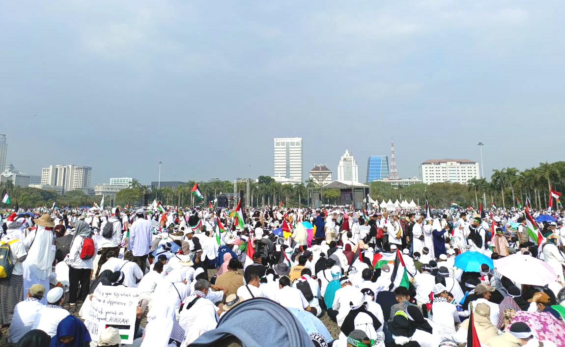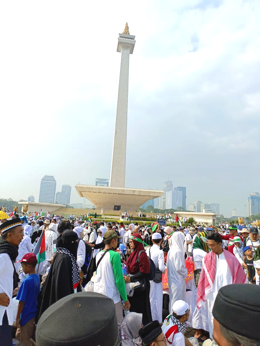 Di bawah terik matahari, lapangan medan merdeka ini menjadi saksi bahwa rakyat Indonesia menolak dengan tegas penjajahan atas Palestina. Seruan “Free Palestine” menjadi frasa penolakan tegas, tiada tempat bagi Zionis Israel di tanah Palestina.[]