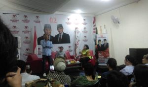 | Rocky Gerung saat diskusi Polical Lies di Rumah Aspirasi Prabowo-Sandi.[Mutia/radarindonesianews.com] |