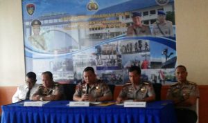 Dirpolair Baharkam Polri Brigadir Jenderal (Pol) Lotharia Latif (tengah) saat memimpin konferensi pers, di Mako Ditpolair Baharkam Polri, Jalan RE. Martadinata, Tanjung Priok, Jakarta Utara.