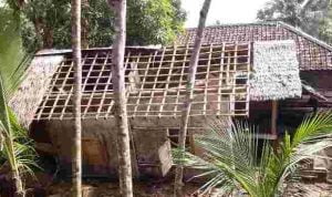 rumah yang tertimpa pohon tumbang. Katanya saat ditemui diruang
