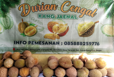 RADARINDONESIANEWS.COM, BOGOR – Durian Cengal Kang Jaenal yang manis dan legit dengan beragam varian menarik banyak pembeli dari berbagai daerah. Durian Cengal Kang Jaenal berlokasi di Kp. Sirna Galih (Cengal) RT.003/005 No. 15, Desa Karacak Kec. Leuwiliang Kab. Bogor.