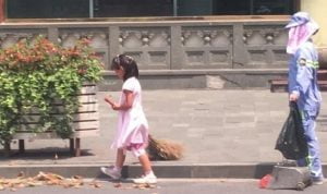 Gadis Cilik Bantu Ibunya Menyapu Jalan, Potretnya Bikin Trenyuh