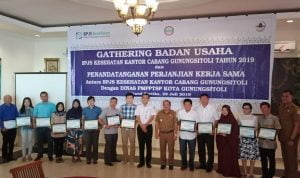 RADARINDONESIANEWS.COM, GUNUNGSITOLI – BPJS Kesehatan Cabang Gunungsitoli mengelar gathering (pertemuan) bersama badan usaha sekaligus penandatanganan perjanjian kerja sama antara BPJS Kesehatan Kantor Cabang Gunungsitoli dengan Dinas PMPPTSP Kota Gunungsitoli, bertempat di Grand Kartika, Senin (29/7).