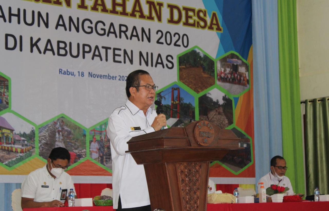 Usai penyampaian laporan panitia, Bupati Nias, Drs. Sokhiatulo Laoli, MM pada arahan dan bimbingannya mengatakan jika pandemi Covid-19 tidak bisa menjadi alasan untuk tidak melaksanakan kewajiban sebagai pengurus desa.