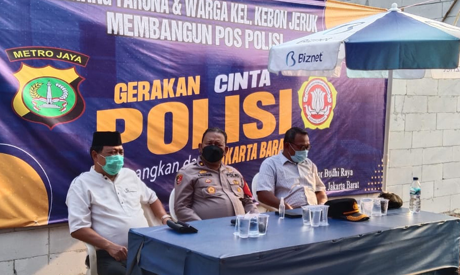 RADARINDONESIANEWS.COM, JAKARTA – Sebagai wujud Gerakan Cinta Polisi, Karang Taruna (Katar) Kelurahan Kebon Jeruk dan Warga menggelar tasyakuran pembangunan Pos Polisi (Pos Pol) tahap pertama di Jl. Budi Raya, Kec. Kebon Jeruk, Jakarta Barat, pada Sabtu, 04 September 2021, pukul 16.00 WIB. Pembangunan Pos Pol yang sudah berjalan sejak sebulan yang lalu ini, sudah mencapai 35% dan dibangun atas inisiatif Katar dan tokoh masyarakat.