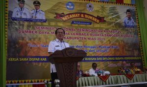 RADARINDONESIANEWS.COM, NIAS – Pemerintah Kabupaten Nias menggelar “Seminar Nasional Peningkatan Kapasitas SDM Lembaga Budaya/Sanggar Budaya di Kabupaten Nias Tahun 2019” dengan tema “Lembaga Budaya dan Sanggar Kuat, Kebudayaan Maju dan Lestari” yang bertempat di Gedung Serbaguna Salak Madu, Gunungsitoli Selatan, Rabu (7/8).