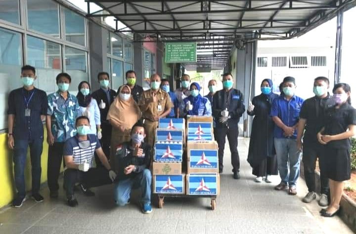 Bantuan secara langsung diserahkan ketua DPC Partai demokrat Kabupaten Aspirasi Mempawah, Ermin Elviani Demokrat kepada RSUD Rubini Mempawah Dr David.