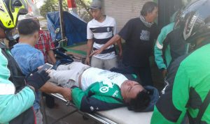 RADARINDONESIANEWS.COM, JAKARTA – Abd Rahman, seorang pengemudi Gojek, terjatuh akibat menghindari motor belakang yang menyalip di Jl. Bangka Raya Pela Mampang, Jakarta Selatan, Kamis (20/12/2018) sekitar pkl 08.30 WIB.