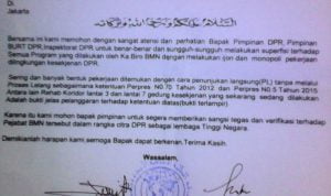 Terkait dengan kejanggalan itulah, pihaknya (IMMN.red) mengirimkan surat resmi kepada Ketua DPR dan Ketua BURT DPR.