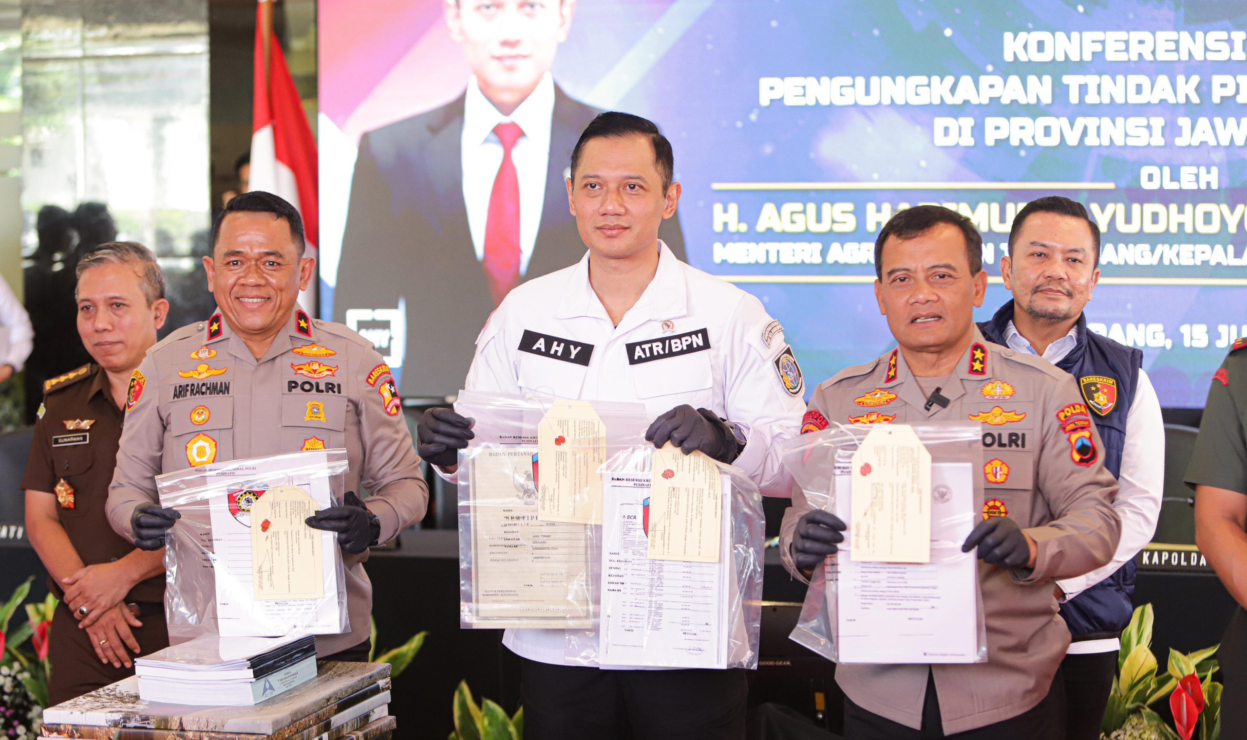 “Untuk kasus pertama, objek masalah adalah lahan eks HGB seluas 82,6 hektar dengan tersangka DB (66), direktur PT Azam Anugerah Abadi (AAA), sementara korbannya adalah PT Azam Laksana Intan Buana (ALIB). Sementara itu untuk kasus kedua melibatkan tersangka DBP (34) di Kota Semarang,” jelas AHY.
