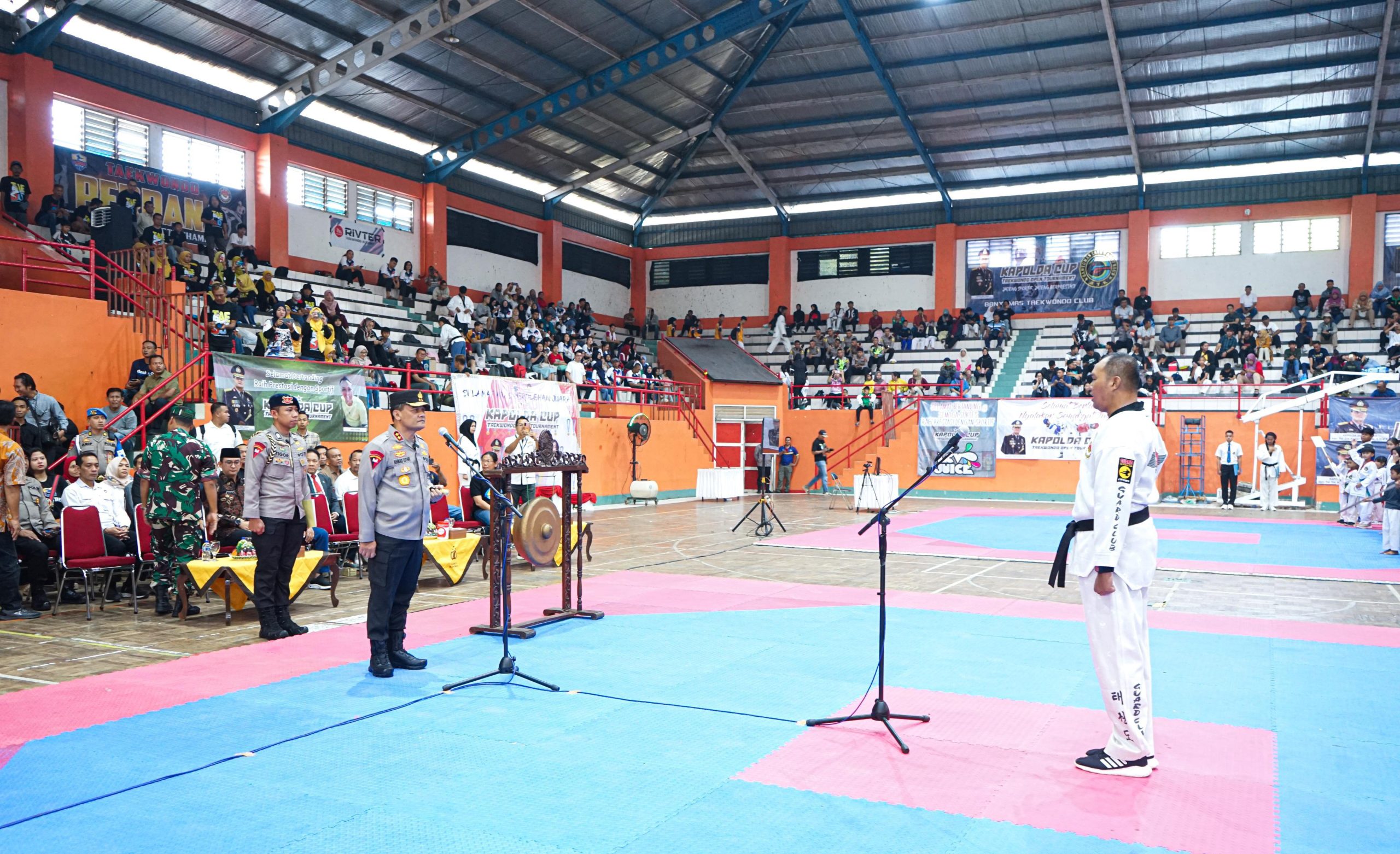 RADARINDONESIANEWS.COM, BANYUMAS – Kapolda Jateng Irjen Pol Ahmad Luthfi membuka Turnamen Taekwondo yang memperebutkan piala Kapolda pada hari Jumat, (12/7/2024) pagi di Gedung Sasana Krida Raga GOR Satria, Purwokerto Kab. Banyumas. Bertajuk Kapolda Cup Taekwondo Open Tournament, kejuaraan yang mengambil tema “Jateng Sportif, Jateng Berprestasi” ini dihadiri oleh sekitar 1000 peserta atlet Taekwondo berbagai kelas usia dari 35 kota dan kabupaten di Jawa Tengah.