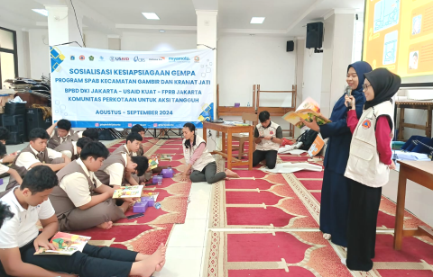 RADARINDONESIANEWS.COM, JAKARTA–– Dalam rangka meningkatkan kemampuan sekolah dalam mengghadapi gempa, BPBD DKI Jakarta bekerja sama dengan the United States Agency for International Development-Komunitas Perkotaan Untuk Aksi Tangguh (USAID KUAT) dan Forum Pengurangan Risiko Bencana (FPRB) DKI Jakarta menyelenggarakan serangkaian pelatihan kesiapsiagaan bencana gempabumi bagi Satuan Pendidikan Aman Bencana di wilayah Kecamatan Gambir dan Kramat Jati, Selasa (13/8/24).