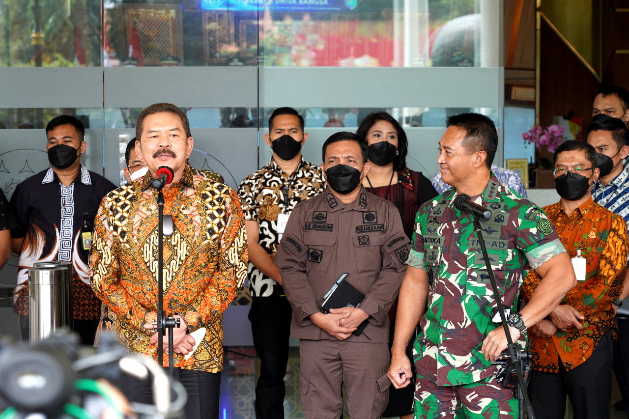 “Jadi saya memberikan statement kepada Jaksa Agung bahwa kita siap mendukung semua yang menjadi kewenangan Jaksa Agung termasuk didalamnya pengadilan HAM, dimana ini juga ada kaitannya dengan TNI, kami akan all out mendukung termasuk proses hukum koneksitas yang sedang berlangsung. Kita akan all out, jadi Bapak Jaksa Agung yakin bahwa kita mendukung apapun yang beliau minta, termasuk dalam penyelesaian Perkara Dugaan Tindak Pidana Korupsi Dana Tabungan Wajib Perumahan Angkatan Darat (TWP AD) Tahun 2013 s/d 2020, kita siap mendukung apapun yang diperlukan mulai dari menghadirkan saksi, barang bukti dan lain sebagainya.” ujar Andika.