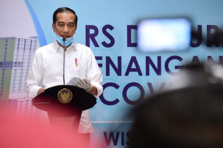 RADARINDONESIANEWS.COM, JAKARTA – Presiden Joko Widodo meninjau kesiapan Wisma Atlet Kemayoran, Jakarta, yang dijadikan rumah sakit (RS) darurat penanggulangan wabah virus korona atau Covid-19, pada Senin, 23 Maret 2020. Presiden tiba di Wisma Atlet sekitar pukul 09.05 Wib dan langsung meninjau tower 7 yang diperuntukkan sebagai RS darurat.