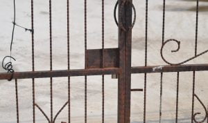 | Gerbang kantor Kepala Desa Kuta Karya digembok |