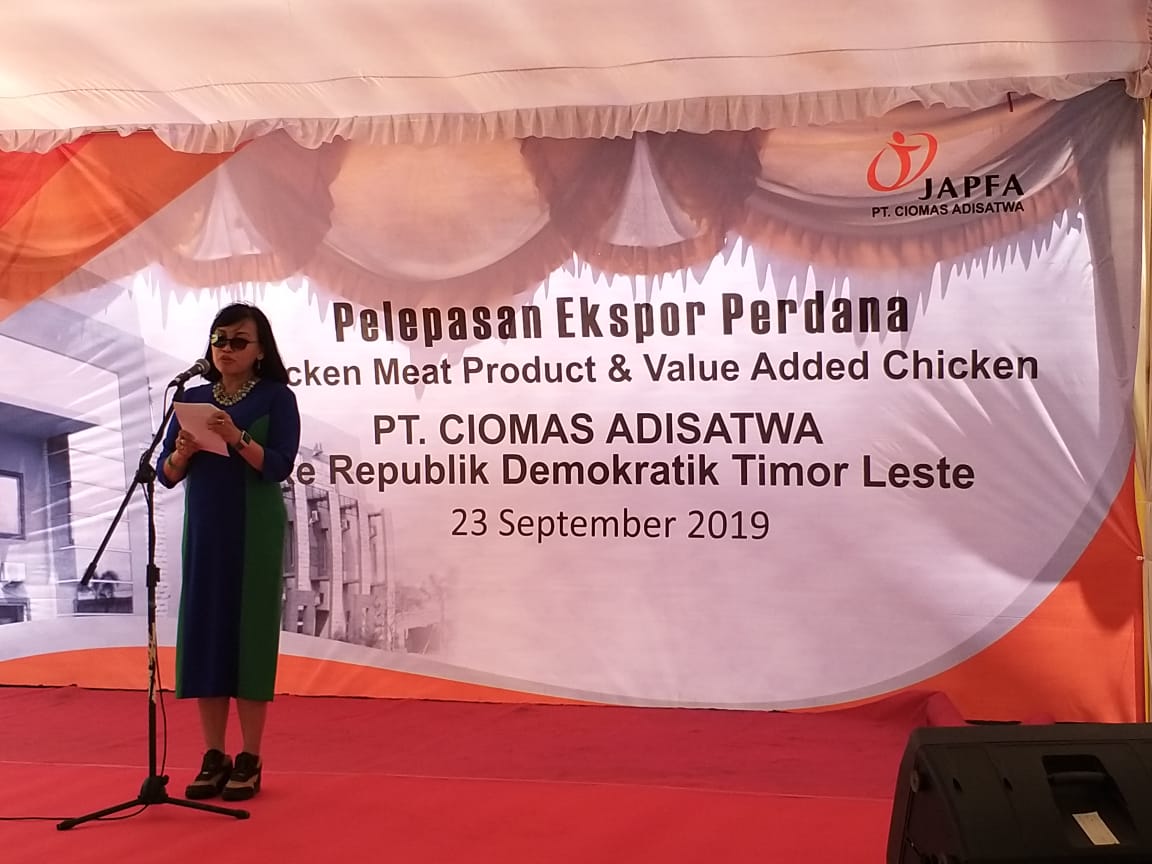 Pelepasan ekspor ini dilakukan oleh Bupati Sidoarjo, Saiful Ilah dan didampingi oleh Ali Jamil, Kepala Badan Karantina Pertanian (Barantan), serta Fini Murfiani, Direktur Pengolahan dan Pemasaran Hasil Peternakan yang mewakili I Ketut Diarmita, Direktur Jenderal Peternakan dan Kesehatan Hewan. Acara berlangsung di RPHU Krian-Sidoarjo milik PT Ciomas Adisatwa serta dihadiri oleh para pejabat Pemda Provinsi Jawa Timur dan Kabupaten Sidoarjo. Fini menyampaikan ekspor ini menjadi salah satu bukti nyata kebijakan pangan Mentan Amran Sulaiman yang terus berkomitmen mewujudkan kedaulatan pangan dengan meningkatkan kesejahteraan peternak serta meningkatkan pertumbuhan ekonomi nasional melalui ekspor.