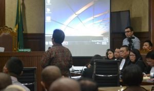 | Budiawan, ahli toksikologi UI saat memberi keterangan di hadapan Hakim pada sidang ke-20 kasus pembunuhan Wayan Mirna Salihin dengan tersangka Jessica Kumala Wongso.[Gofur/radarindonesianews.com] |