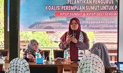 RADARINDONESIANEWS.COM, MEDAN  — Ketua Koalisi Perempuan Indonesia Peduli Al-Aqsha (KPIPA), Nurjanah Hulwani, melantik pengurus Koalisi Perempuan Sumut untuk Palestina (KPSP) Provinsi Sumatera Utara dan KPSP Kabupaten Deli Serdang pada Selasa (17/2) di Medan. Kegiatan ini mengangkat tema “Dari Hati untuk Palestina, Dari Amanah menuju Perjuangan”.