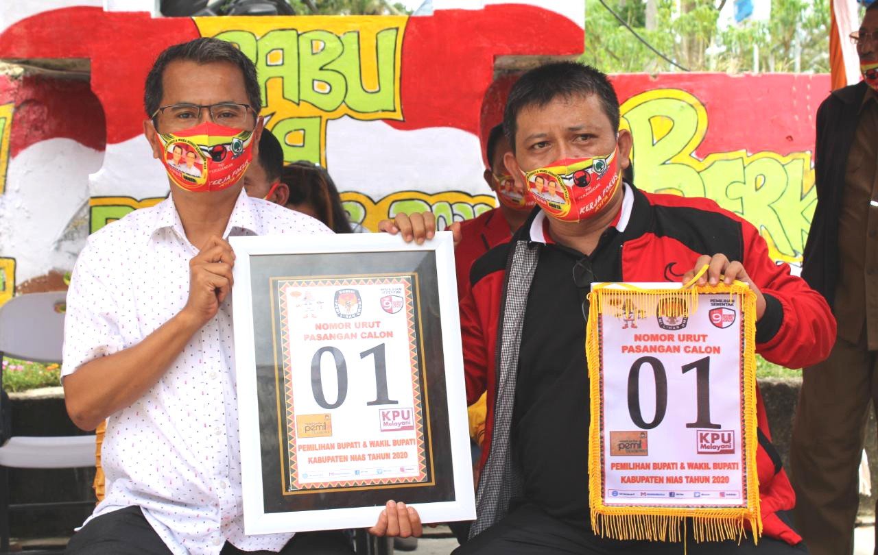 Dalam pencabutan nomor urut, pasangan calon Bupati dan Wakil Bupati Nias, Ya’atulo Gulo, SE, SH, M.Si dan Arota Lase, A.Md mendapat nomor urut 1 (satu), pasangan Drs. Christian Zebua, MM dan Anofuli Lase, SH, MH mendapat nomor urut 2 (dua), pasangan Enanoi Dohare, SH, MH dan Yulius Lase, SE, MH mendapat nomor urut 3 (tiga) dan terakhir disusul pasangan Arosokhi Waruwu, SH, MH dan Asaldin Gea untuk nomor urut 4 (empat).
