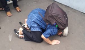 Jonru Ginting sujud syukur usai dirinya bebas, Jumat (23/11). (Foto: NUSANTARANEWS.CO/Romadhon)