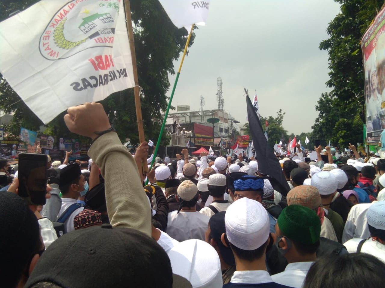 Habib Rizieq Shihab yang akan menuju langsung ke maka Besar Front Pembela Islam sudah Ditunggu ribuan masa di sekitar Petamburan, Jakarta Pusat.[]