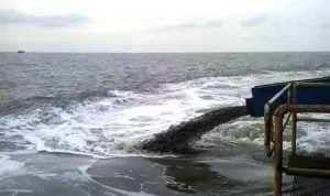 | Salah satu aktivitas Kapal Isap yang mengotori pantai.[Dnny/radarindonesianews.com] |