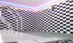 Interior old Spa kotak hitam putih dengan led warna warni membuat sensasi tersendiri bagi pengunjung