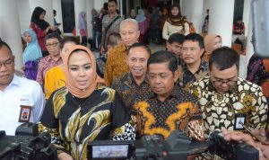 Bupati Karawang dr. Hj. Cellica Nurrachadiana didampingi Kepala Dinas Sosial Kabupaten Karawang Setya Darma serta Kepala BAPPEDA Karawang Eka Sanata menerima kedatatangan Menteri Sosial RI Idrus Marham.