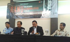 RADARINDONESIANEWS.COM, JAKARTA – Perisai, lembaga edukasi bagi mereka yang awam hukum, rehabilitasi dan korban kriminalisasi bersama Jitu, Jurnalis Islam Bersatu gelar diskusi publik bertema “Ranu Dan Ancaman Kriminalisasi Jurnalis” di Hotel Sofyan Inn, Tebet, Jakarta Selatan, Minggu (21/5/2017).
