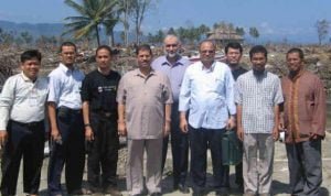 | Mohammaed Mursi (tengah) bersama relawan dan ustadz saat recovery Aceh pasca tsunami |