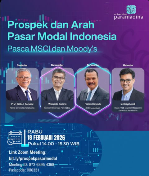 RADARINDONESIANEWS.COM, JAKARTA – Diskusi panel bertajuk “Prospek dan Arah Pasar Modal Indonesia Pasca MSCI dan Moody’s” yang digelar di Universitas Paramadina, Rabu (18/2/2026), memotret kondisi pasar modal nasional yang tengah menghadapi tekanan sekaligus peluang reformasi.