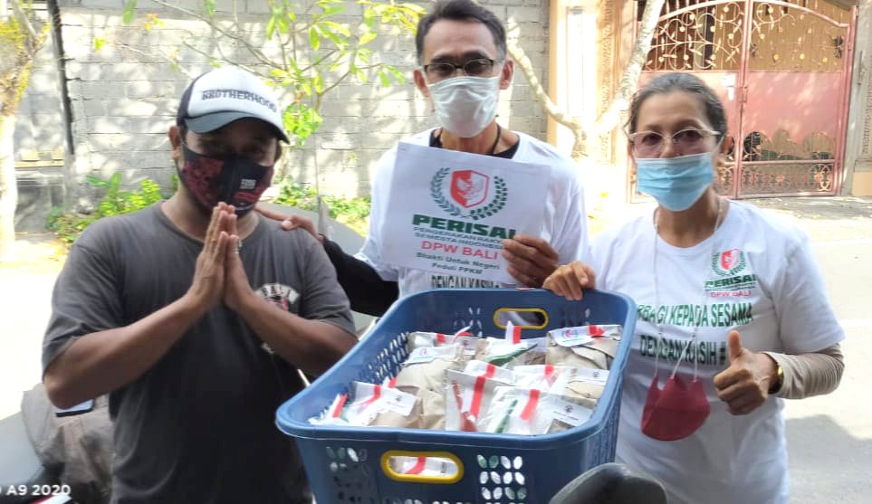 Peduli Negeri, PERISAI Bali Bagikan Nasi Bungkus Merah Putih Untuk Warga Terdampak PPKM